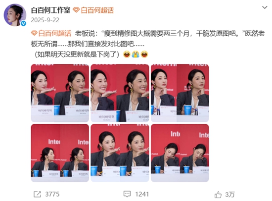 这并非白百何第一次因“真实”出圈。此前她工作室的操作就曾让网友震惊——在其他明星团队疯狂精修、藏着掖着生图时,白百何工作室直接把她的生图和精修图打包发布,还耿直附言“老板说瘦到精修样要两三个月,干脆发原图吧”。从对比图能看出,除了肤色稍作提亮,白百何的五官、状态几乎没变化,哪怕是原图里清晰可见的法令纹和轻微浮肿,也丝毫不影响颜值,反而因这份坦诚收获满屏好评,网友直言“原图比精修更有质感”。